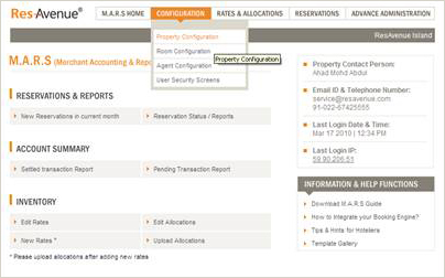 Log into your ResAvenue M.A.R.S. account and click on the Property Configuration option located in the Configuration dropdown on the navigation bar.