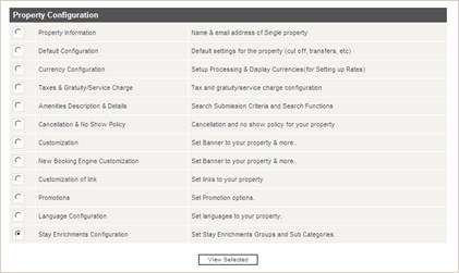Select ‘Stay Enhancements’ and click on the view selected button. This will open up the 'Stay Enhancement' configuration page.
