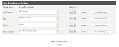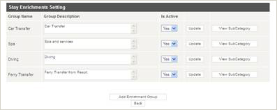 Once you have finished configuring the enrichment group or sub-category, click on the Update Button to update your reservation engine.