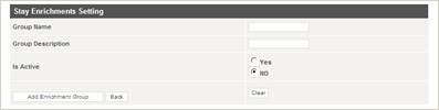 On this page, you can view all existing stay enhancements. You can also add and configure new enhancements, by clicking on the ‘Add Enrichment Group’ button on the bottom of the page.
